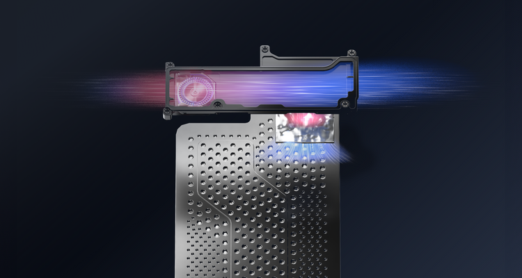 Using a large, through-flow duct design, the fan quickly expels heat from the device while CPU heat is conducted via liquid metal to the 4D Ice-Stage VC cooling plate for more efficient dual-track cooling.