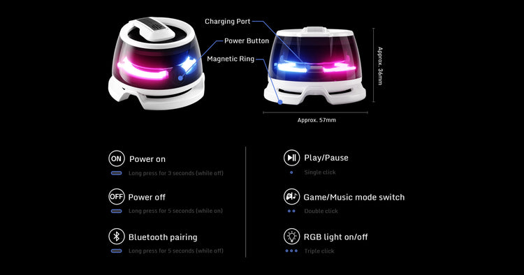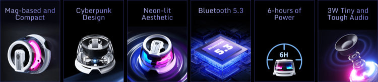 Mag-based and Compact | Cyberpunk Design | RGB Lighting Aesthetic | Bluetooth 5.3 | 6-hours of Power | 3W Tiny and Tough Audio